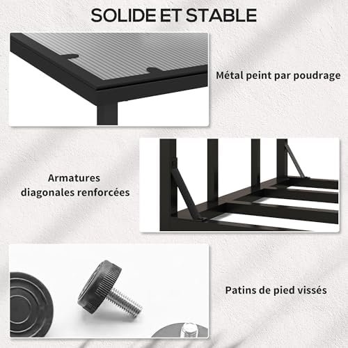- Toit en polycarbonate et cadre métallique revêtu de poudre prêt pour les éléments extérieurs