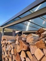 Le toit est composé de plaques de polycarbonate de 6 mm / de plaques à double nervure bordées de profilés en aluminium.