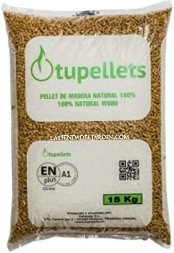 ✔️ Sac à granulés de haute qualité, entièrement naturel. ✔️ Capacité : 600 kg. Servis en 20 sacs de 15 kg. ✔️ Certifié EN PLUS A1. ✔️ Catalogué comme biomasse solide et formé par de très petits cylindres de 6 mm de diamètre. ✔️ Produit fabriqué en Espagne.